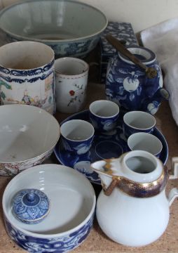A Meissen porcelain cream jug together with Chinese mugs and other oriental porcelain