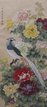 A Chinese silk panel painted with birds and flowers together with two other silkwork pictures and other assorted pictures and carved panels
