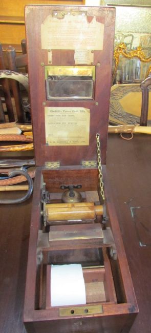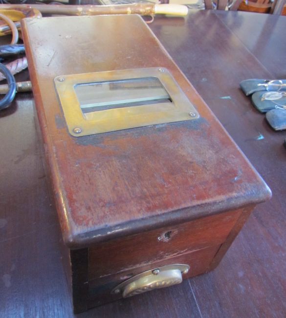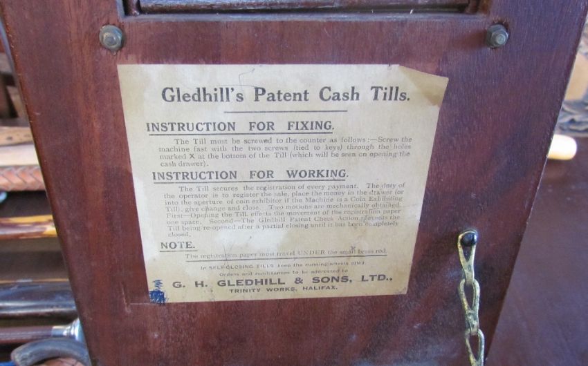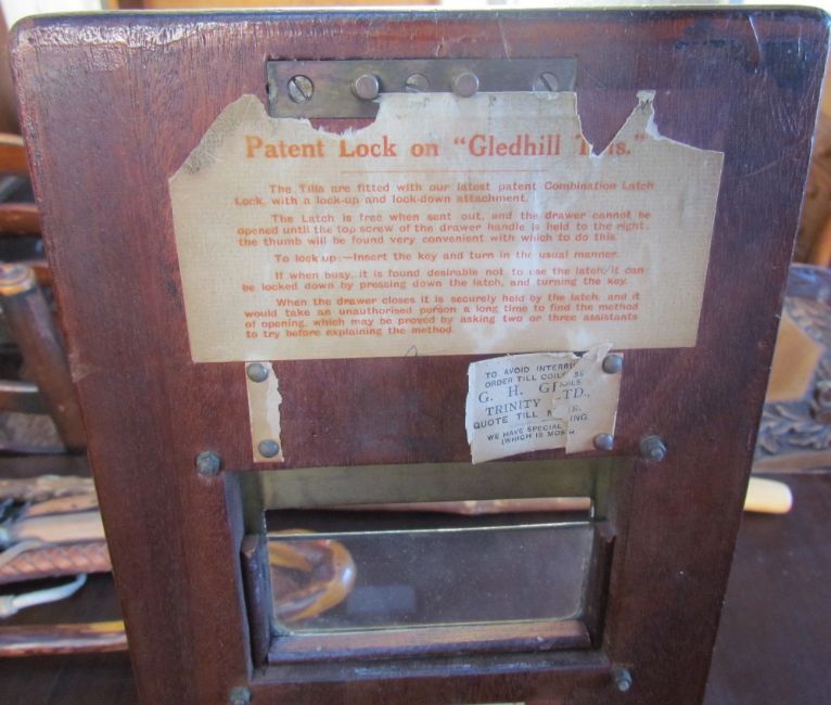 A Gledhill's Patent Cash Till in mahogany with brass fittings
