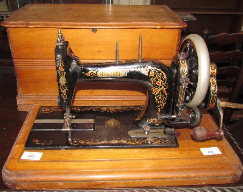 A cased Bradbury sewing machine