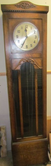 A 20th century oak long case clock, with a silvered dial and Arabic numerals and a glazed trunk door