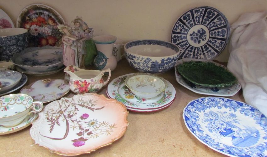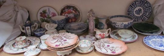 A French part dessert set together with decorative plates, pottery bowls, collectors plates etc