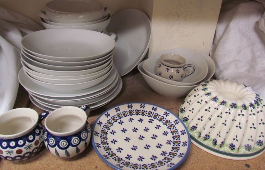 A Polish part dinner set together with Boleslawiec pottery