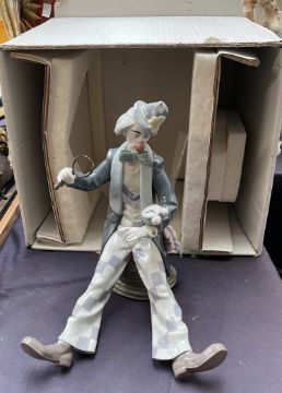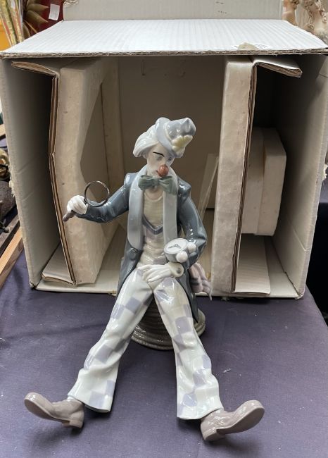 A Lladro figure of a clown "Checking the time", boxed