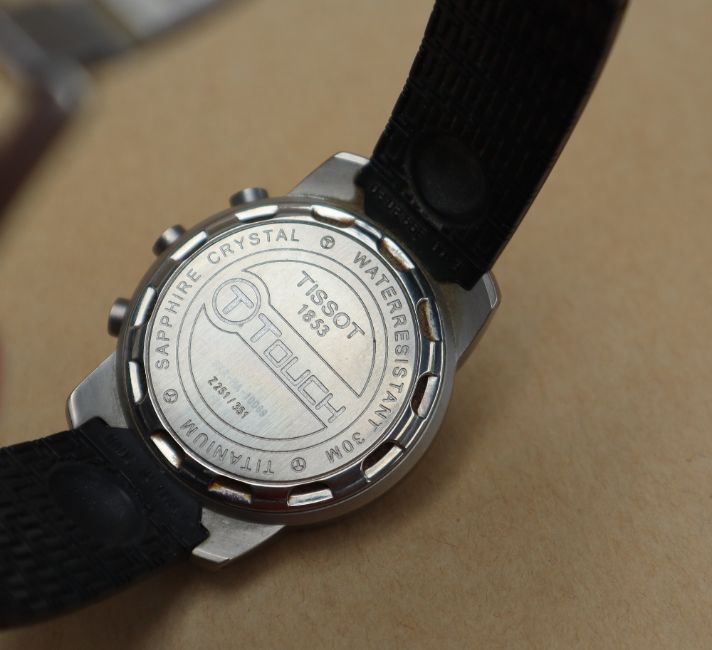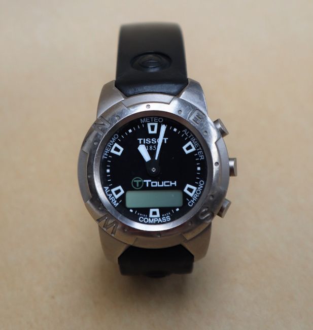 A Gentleman's Tissot Touch titanium wristwatch with Altimeter, chronograph, weather, compass and alarm on a black rubber strap