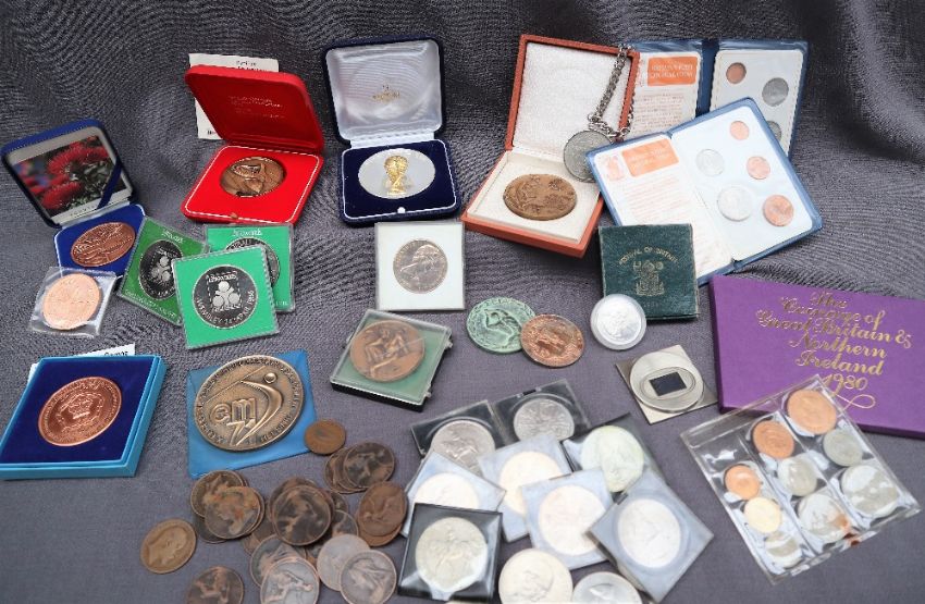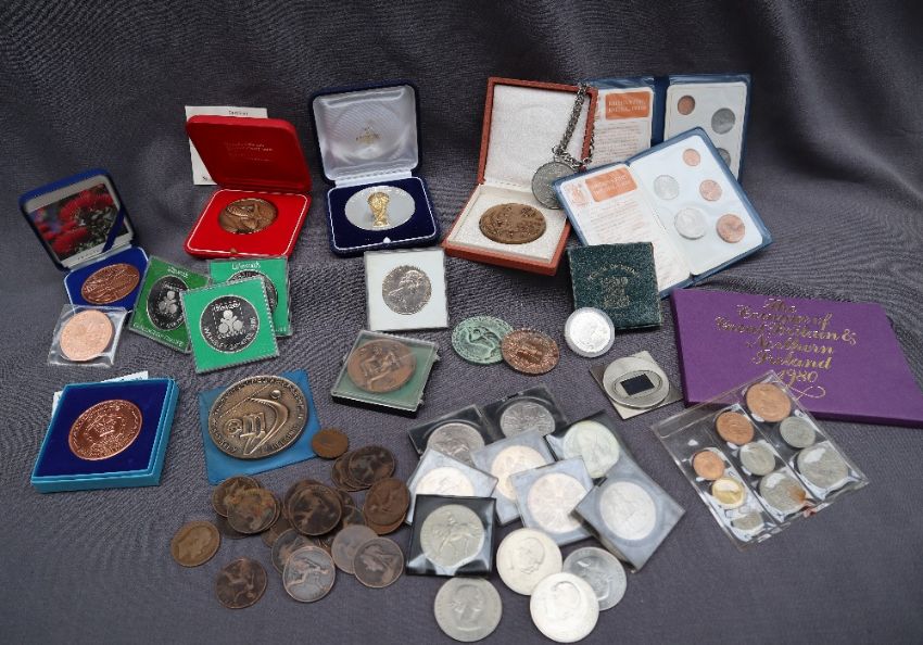 A FIFA 1998 World Cup medallion together with other medallions and coins