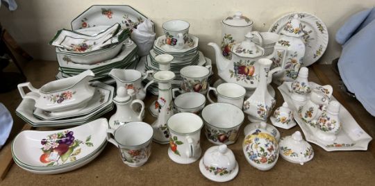 A Johnson Bros fruit decorated part dinner set together with a part tea set, Aynsley porcelain etc