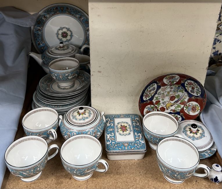 A Wedgwood Florentine pattern part tea service in turquoise etc