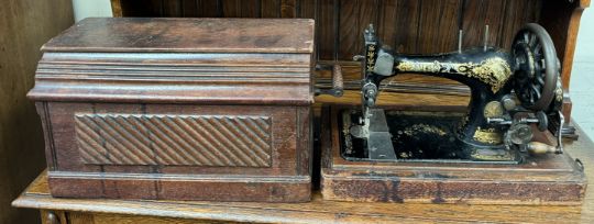 A Singer sewing machine in an oak case