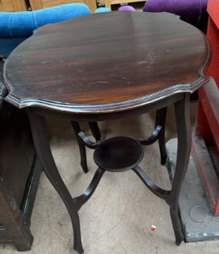 A mahogany occasional table with a shaped circular top on four square legs united by an undertier