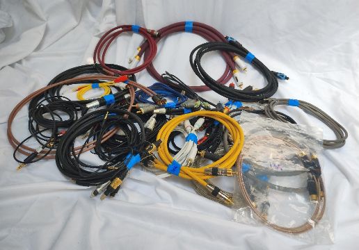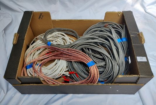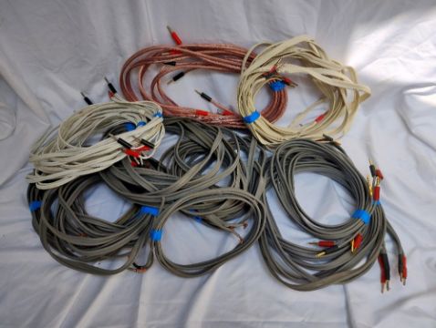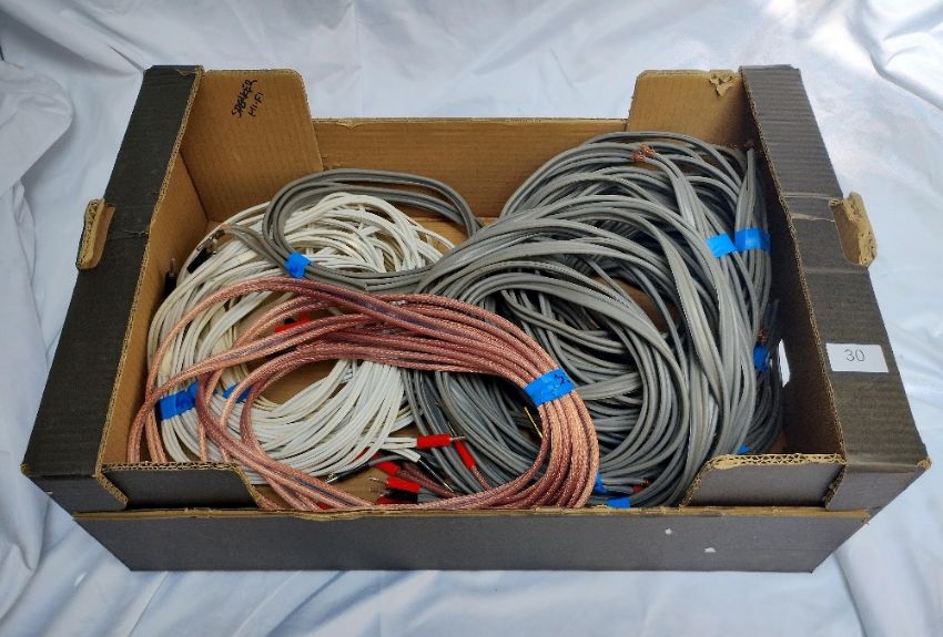 A Collection of Hi-Fi Interconnects and Speaker Cables - An assortment of Interconnects: 6 optical cables from 1.5 to 3m. Over 15 RCA cables of various brands from 5m to 1m. 4 x 3.5 to RCA of various lengths. Several 3.5mm to 3.5mm cables and Digital Coax cables. Box of Speaker Cables: Large selection of Linn K20 - terminated (banana plugs and sockets) and unterminated. Various lengths from 2m to 8m. Unbranded 2 x 2 x 4 bi-wire cables. Rega FSC Quattro 5m and 2 x 3m Van Damme. All untested.