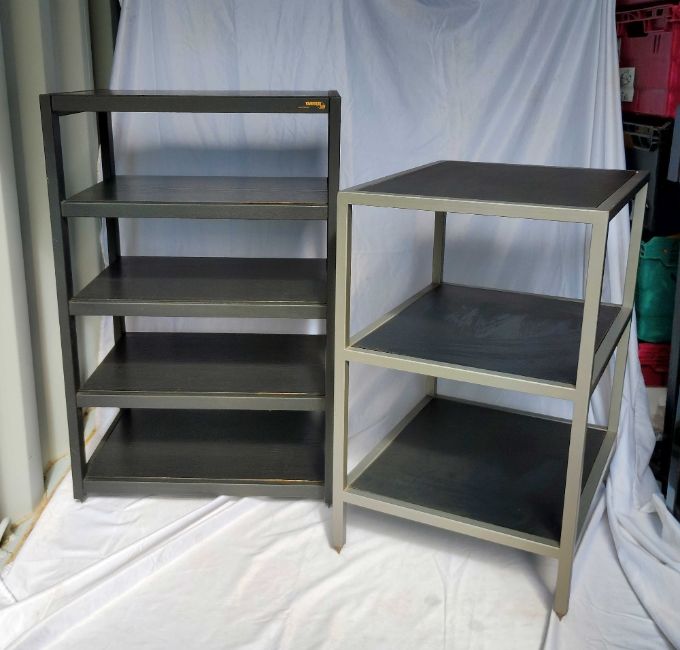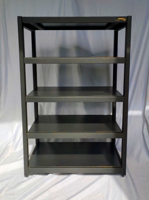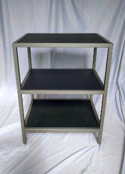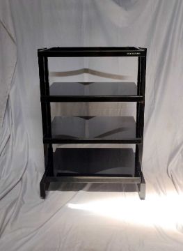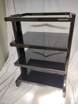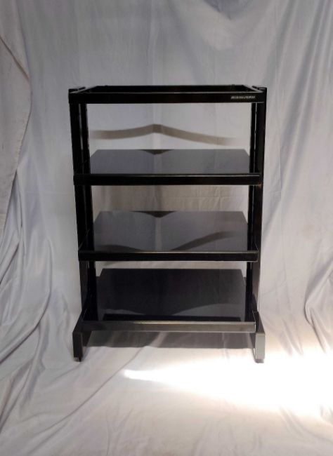 3 Hi-Fi StandsTarget Stand with spiked feet. H 780mm, W 505mm, D 395mmUnbranded stand with spiked feet. H 640mm, W495mm, D398mmSound Organisation stand with glass shelves - top glass missing. H 730mm, W 510mm, D 360mm