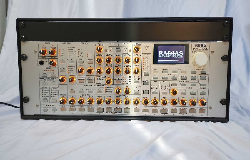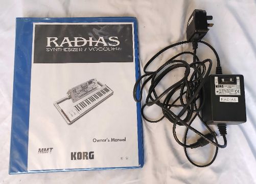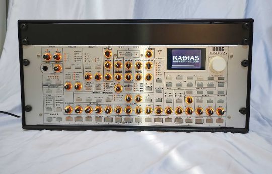 Korg Radias Synthesiser in a Stackable Rack UnitSynthesiser comes with an owner's manual and power supply. Stackable rack unit comes with a blanking plate for neatness. CONDITION REPORT: Tested and appears to be working. No guarantee or warranty implied. Operational status may change during shipping.