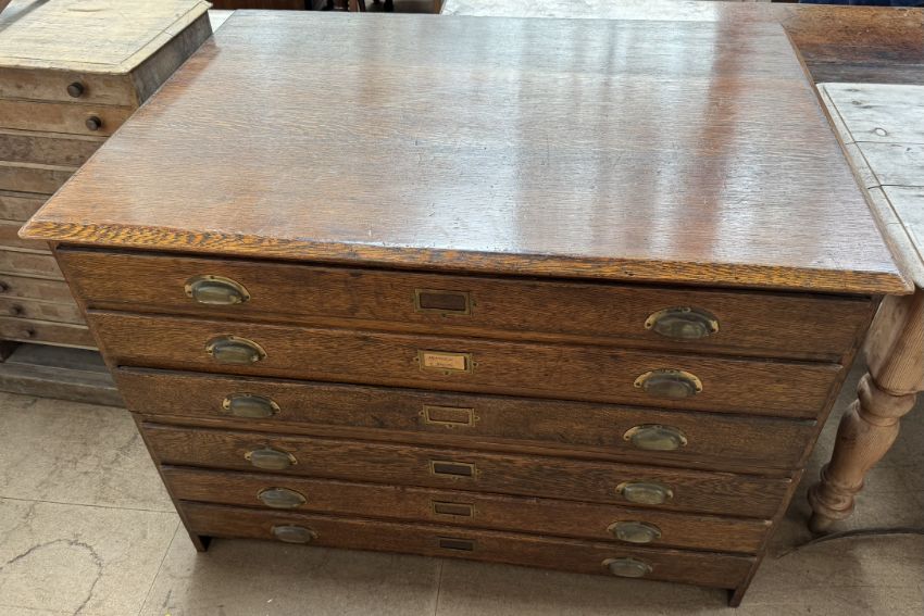 An oak plan chest, with a rectangular top above six long drawers, 120cm wide x 85cm deep